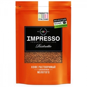Каталог продукцииКофе Impresso IMPRESSO Ristretto 100 гр. субл. с молотым дой-пак (20) |