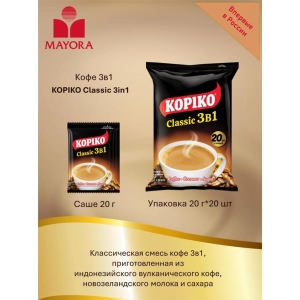 Кофе Трейдер / Каталог / Напитки / Kopiko / Напитки Kopiko KOPIKO 3 в 1 CLASSIC 20 гр.х 20 пак., м/у (12) (в пал.60) NEW