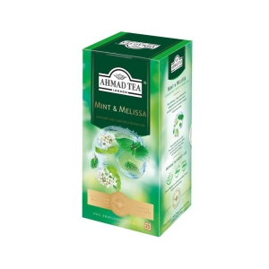 Каталог продукцииЧай Ahmad tea Мята-Мелиса 25 пак.*1,8 гр.зеленый (12) ф/п (2258) |