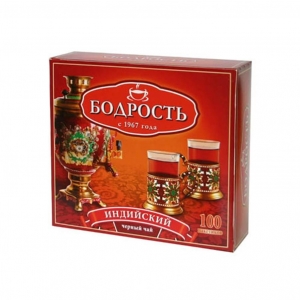 Каталог продукцииЧай Бодрость ИНДИЙСКИЙ мелкий 100 пак.*2 гр., черный (12) |