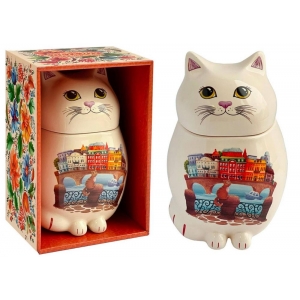 Кофе Трейдер / Каталог / Чай / Get&joy / Чай Get&joy Чайница керамическая Кот, Цветной город 50 гр. китайс.черный (9) (0258)
