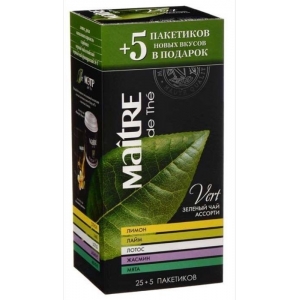 Кофе Трейдер / Каталог / Чай / Maitre de the / Чай Maitre de the Ассорти Классик 25 пак.*2 гр., зеленый (лимон,лайм,молочный улун,жасмин,мята) (10) (бак195р)